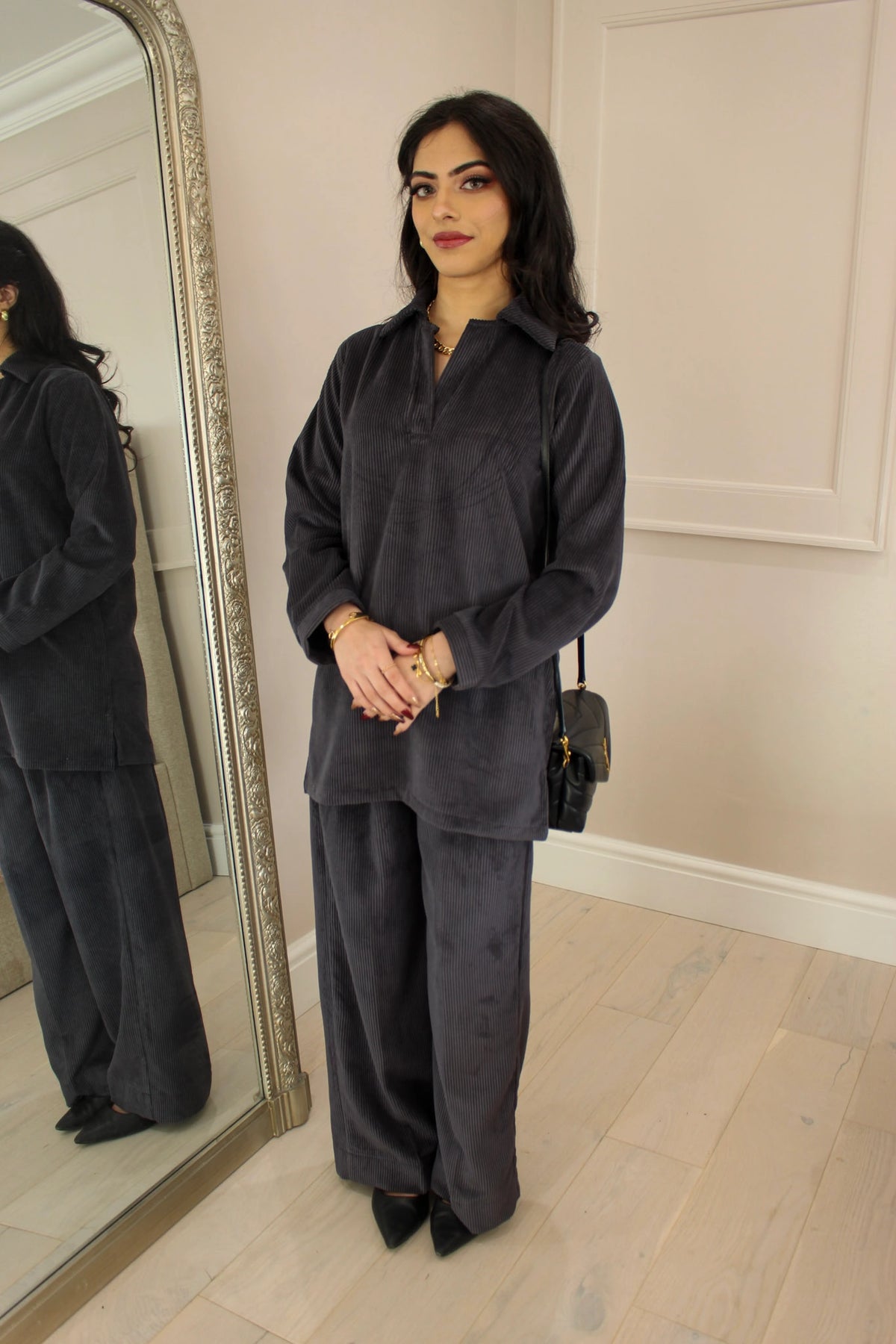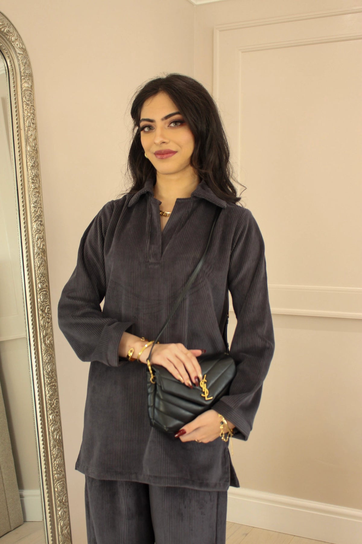 Grey Velvet Corduroy Coord Set